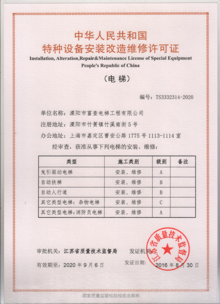 - 溧陽(yáng)市富奎電梯工程有限公司